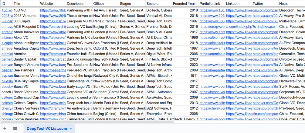 Download DeepTechVCList.com CSV/Excel